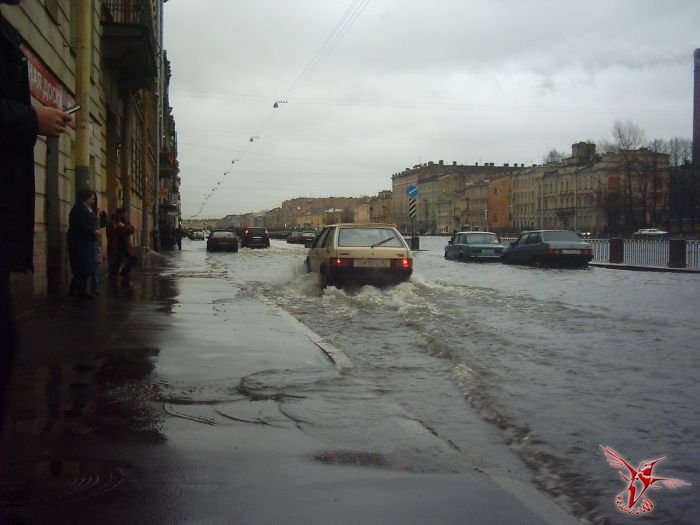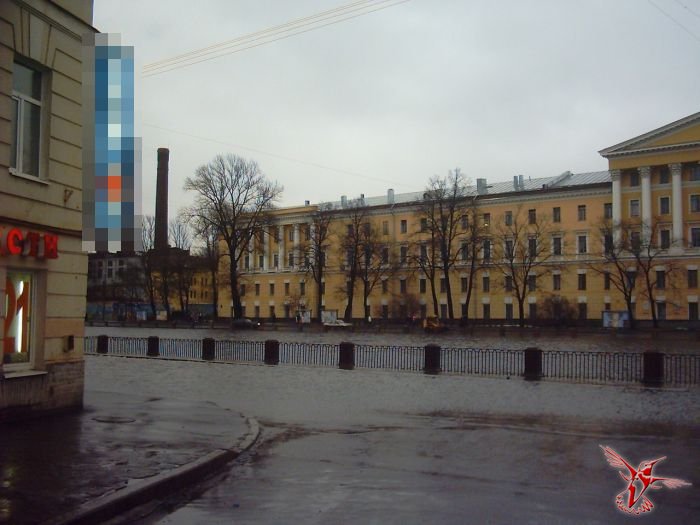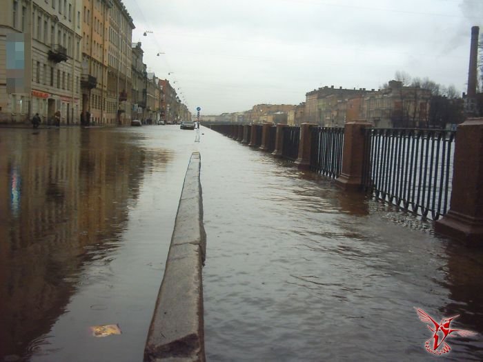 В Санкт-Петербурге шторм, и Фонтанка вышла из берегов.